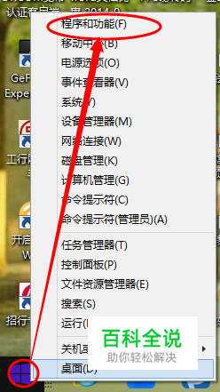 将鼠标指针移到最左下角,然后右键弹出列表窗口,我们点击选择“程序和功能”。