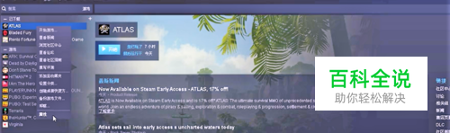 首先在STREAM里打开库,在左侧列表里找到ATLAS游戏