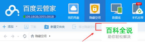 登录成功后,在百度云管家的主界面上点击隐藏空间,如下图所示。