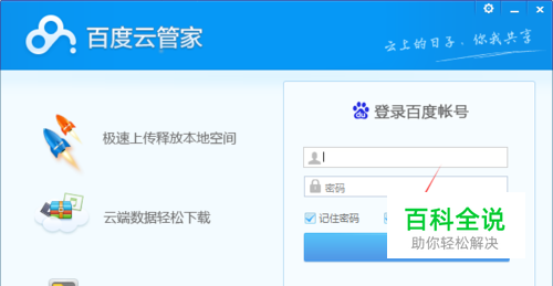 双击打开百度云管家,在登陆界面上输入百度帐号和密码,点击登录,如下图 所示。