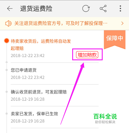 打开手机淘宝,从退款订单详情点击“运费险”进入