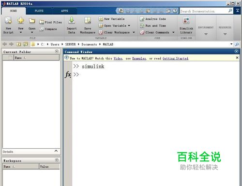 第一,启动MATLAB,在命令行窗口(Command Window)输入simulink然后回车。