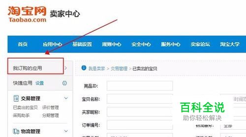 打开卖家中心,找到我订购的应用。