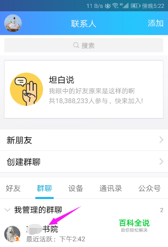 点开【联系人】之后,那么,小编就要点开一个QQ群了,随意点开一个,如图。