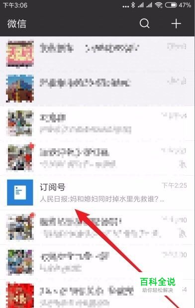 首先我们在手机上找到并打开微信后,在微信聊天主界面,我们点击“订阅号”菜单项。