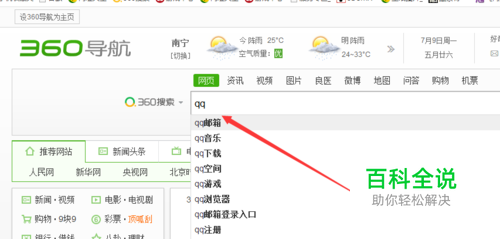 2、在浏览器首页输入QQ邮箱,按键盘Enter键搜索。