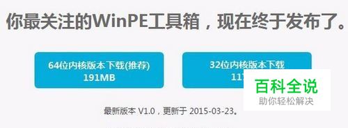 首先百度“微PE”,打开网站后,直接在下载区,先下载PE工具。 根据索要安装的系统位数,选择64位或32位即可。