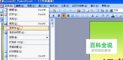 打开PPT ,点击菜单中的“文件”--“另存为”;
