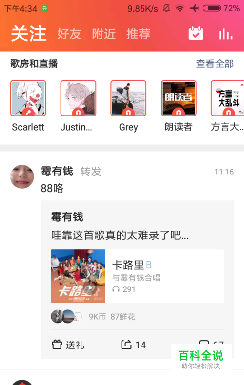 打开全民k歌,打开你想导出的歌曲