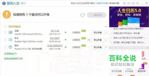 第一步: 在偶尔能够进入系统的情况下,下载安装驱动人生对电脑各个硬件的驱动进行检测。(提示驱动只需要升级,而没有显示驱动异常的状态)