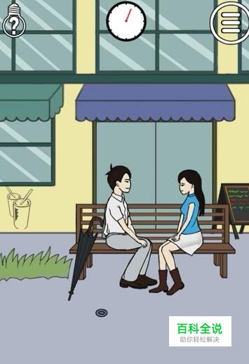 雨伞和衣服被拿走后,老头差不多快消失在画面里,天空就下雨了,情侣就会被淋湿身,他们就无法开开心心地约会了,至此我们也 顺利通关。