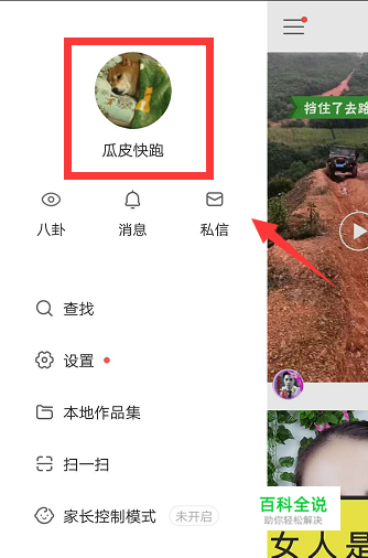 打开快手APP,点击左上角三条横线按钮。