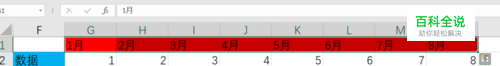 小编这里是以选中了“1月”为例子开始的,按住Ctrl+shift+右(上下左右方向键)就可以快速选取所有对应单元格周围的数据了,图为往右选取的,直接选取了所有1月右侧的数据