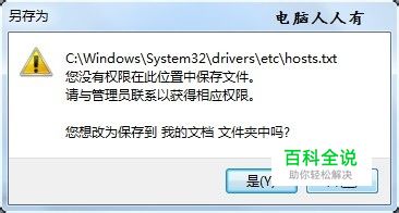 点选hosts文件之后,再点击保存会有一个确认框▶是 如果有权限,就能正常保存hosts文件。如果有安全软件弹出警示,不让修改,可以先将其关闭,修改完成之后再开启安全软件。