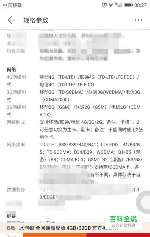 我们看对应的型号及是否 为全网通