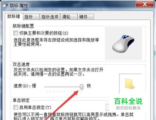 首选项就是鼠标双击选项,一般默认是在中间,我们将其滑倒最右边,点击确认,对了设置完成了,试试,双击反映是不是快了,