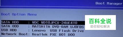 重启时,同时按下Fn+F12键,选择USB-HDD启动,就可以了。