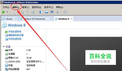 打开之后 我们在虚拟机软件的左侧工具栏中打开【编辑】工具。