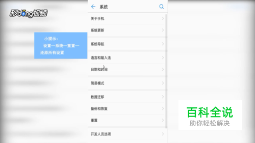 其次打开设置,点击“系统”,点击“重置”,选择还原所有设置。