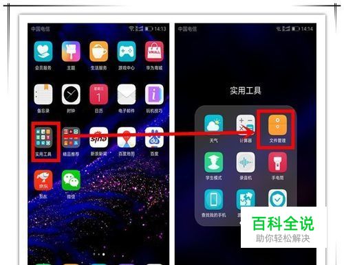 回到手机桌面,找到“文件管理”选项(一般被系统放在“实用工具”中),打开华为手机文件管理器。