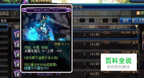 那么咱们来看一下那些适合平民使用的高性价比卡片。首先看冰属性强化卡片,命运之诺伦卡片, 加8点属性强化,用之前获得获得的主人公卡片作为材料升级一下就可以加10点属性强化。价格三十多万冰强化卡实属性价比之王。