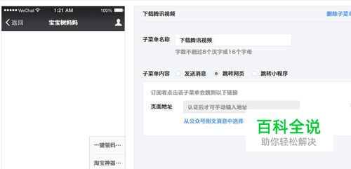 微信公众号选择“自定义菜单”,任意添加一个菜单,这里添加的是“下载腾讯视频”,如图