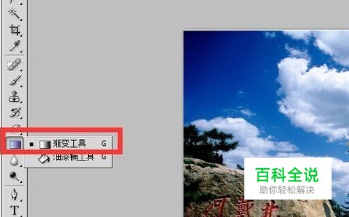 在界面左侧的工具条中选择渐变工具,即第一个选项,准备执行渐变效果。