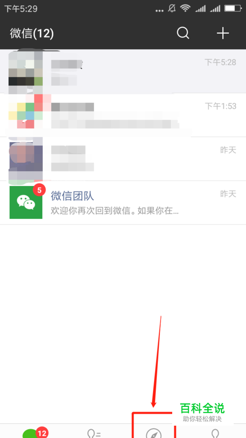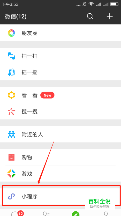 在【发现】界面下方找到【小程序】按钮,点击【小程序】
