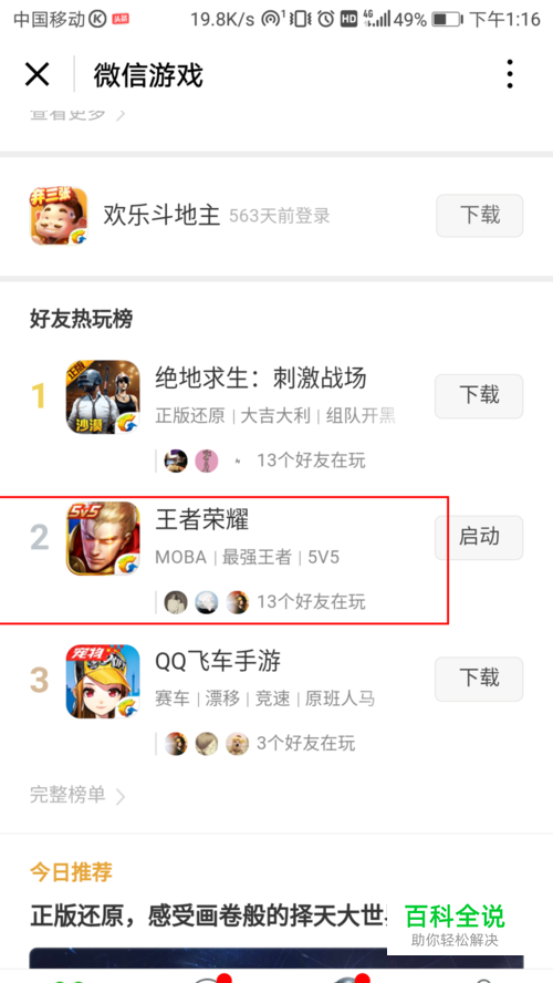微信区用户: 打开微信,在“发现区”找到“游戏”,如下图。