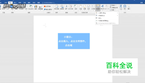 点击“插入”,点击“文档部件”。
