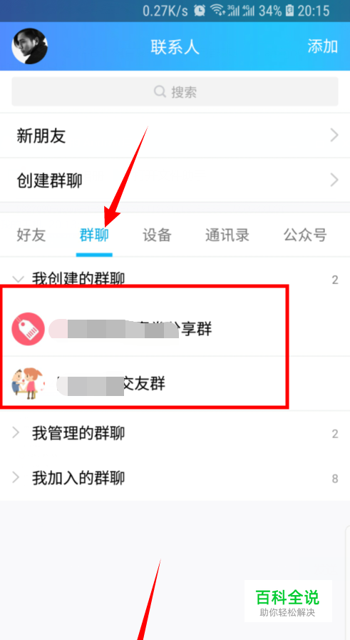 选择下方联系人按钮并选择群聊列表。