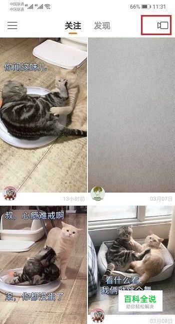 第一步在我们的手机上打开快手,进去之后,点击右上方的拍摄图标,如下图所示: