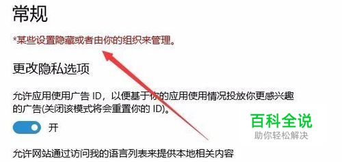 在打开的Windows设置窗口中,经常看到提示:某些设置隐藏或由你的组织来管理