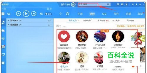 点击打开已经安装在电脑上面的酷狗音乐之后,我们看到上面搜索框哪里出现一个搜索的歌曲的按钮,已经下面有一些分类选择等,根据自己需求选择自己需要下载的歌曲,如下图所示:
