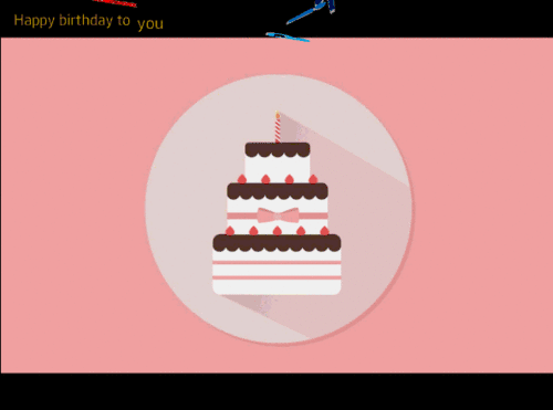 整个片头的动画效果如下,“Happy birthday”空翻出现,然后路径动画向左下方移动同时缩小。接着“生日快乐”挥鞭式出现,然后路径动画右上方移动同时缩小。接着“送给某某的生日祝福”淡出。