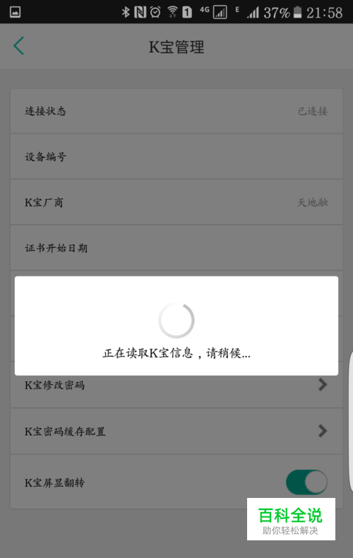 此时再次进入农行掌上银行,看到K宝管理中已可以识别并正常使用