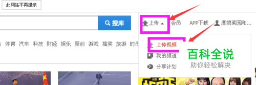 登陆优酷,之前要注册优酷,完善下用户名等信息。登陆后,用户名就会出现在网站右上角。点击“上传”,在弹出下拉框中选择“上传视频”。