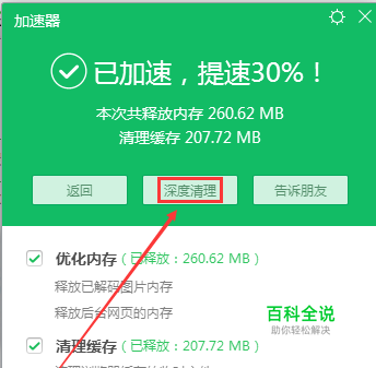 加速完成之后,窗口上会显示清理结果,然后再点击深度清理