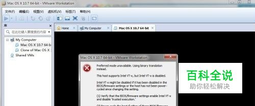 如果没有开启该技术,在虚拟机中将无法启动操作系统,可能弹出如下所示对话框,提示vt-x未开启。