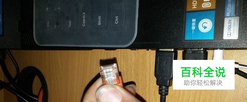 按住水晶头上的胶片,将网线的一段,插入墙上的数据接口(即网线接口),如图。