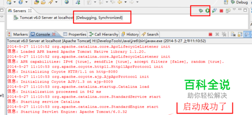 在实际开发中一般都是eclipse+tomcat(也许还会用到tomcat的插件),我们只需要在eclipse中单击servers上的按钮就可以成功启动tomcat了,