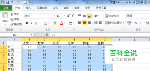 对大于90分的进行标记颜色: 下拉搜索框,发现大于90的第一个数,选择它,按住shift,选择最后一个数。