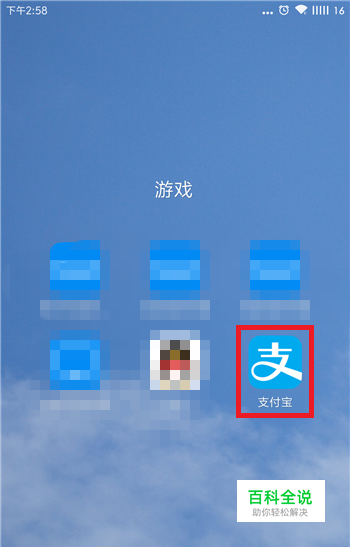 在手机桌面上找到下载安装好的支付宝APP,如图所示。