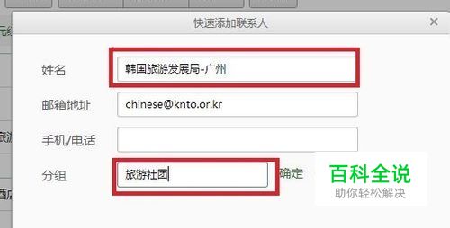 在“快速添加联系人”菜单中修改相应的信息,点击“确定”