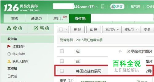 登录126网易邮箱,收到新的邮件,希望将发件人“韩国旅游发展局”添加到通讯录:将鼠标移到“韩国旅游发展局”文字,在弹出的名片中点击“添加联系人”