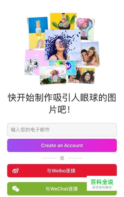 打开PicsArt美易app注册登录,这里用微博直接登录