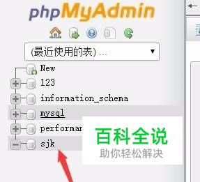 登录PHPmyadmin数据库首页,找到指定的数据库建表,比如我的就是sjk这个表,然后点击。