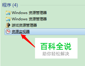 开始 -- 搜索程序 框内 输入 “资源”-- 单击顶部的资源监视器