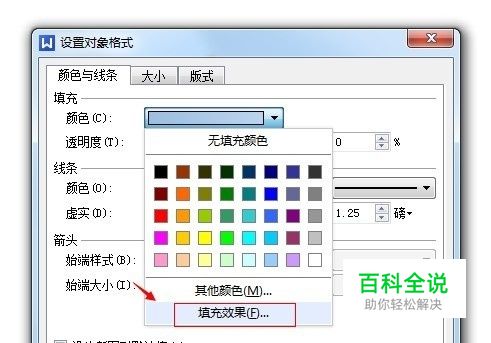 第二步:选中五角星--右键--设置对象格式--颜色与线条--填充--颜色,点击填充效果