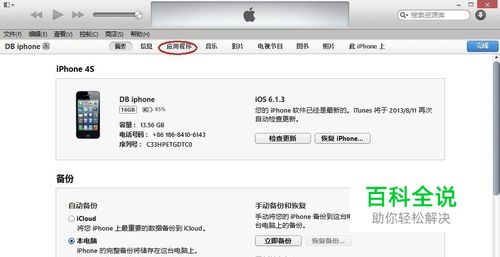 首先把 iPhone 手机和电脑连接起来,打开 iTunes ,工作界面如图所示。
